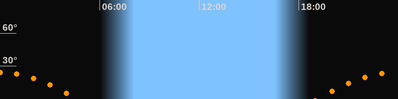 | Aufgang | 19:05 Uhr im Südosten (αAz = 113,4°) |