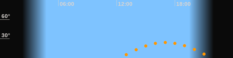 | Aufgang | 12:16 Uhr im Südosten (αAz = 113,4°) |