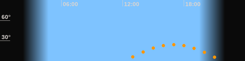 | Aufgang | 12:12 Uhr im Südosten (αAz = 113,4°) |