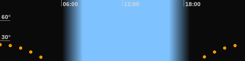 | Untergang | 04:47 Uhr im Südwesten (αAz = 246,6°) |