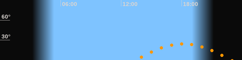 | Höchster Stand (Kulmination) | 18:10 Uhr (h = 24,3°) |