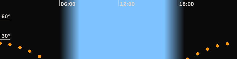 | Untergang | 04:34 Uhr im Südwesten (αAz = 246,6°) |