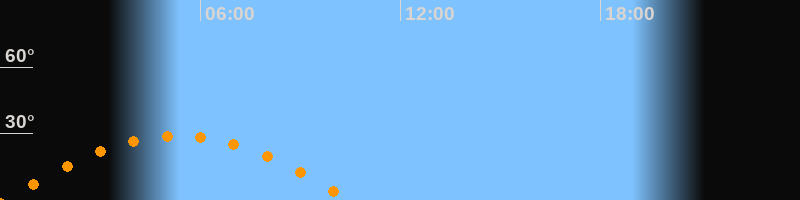 | Höchster Stand (Kulmination) | 05:19 Uhr (h = 29°) |