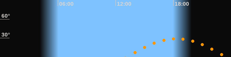 | Höchster Stand (Kulmination) | 18:19 Uhr (h = 29°) |