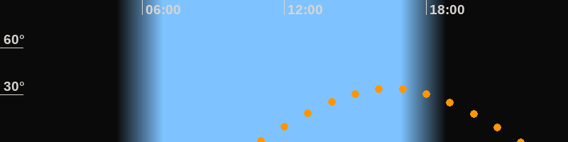 | Höchster Stand (Kulmination) | 16:28 Uhr (h = 34°) |