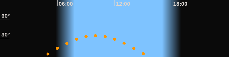 | Höchster Stand (Kulmination) | 10:00 Uhr (h = 34°) |