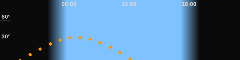 | Höchster Stand (Kulmination) | 07:39 Uhr (h = 34°) |