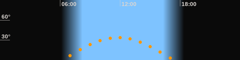 | Höchster Stand (Kulmination) | 11:48 Uhr (h = 34°) |