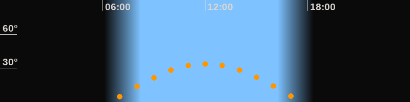| Höchster Stand (Kulmination) | 12:01 Uhr (h = 34°) |