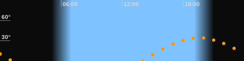 | Höchster Stand (Kulmination) | 19:33 Uhr (h = 34,3°) |