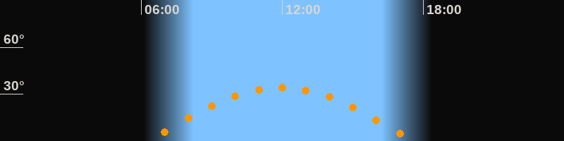| Höchster Stand (Kulmination) | 11:56 Uhr (h = 34,3°) |