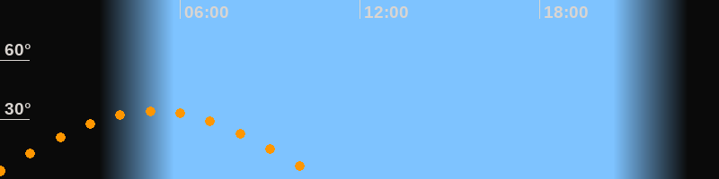 | Untergang | 10:46 Uhr im Westen (αAz = 262,8°) |