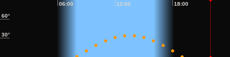| Höchster Stand (Kulmination) | 13:28 Uhr (h = 34,3°) |