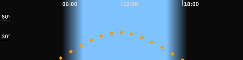 | Höchster Stand (Kulmination) | 11:50 Uhr (h = 41,4°) |