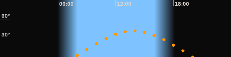 | Höchster Stand (Kulmination) | 13:51 Uhr (h = 41,4°) |