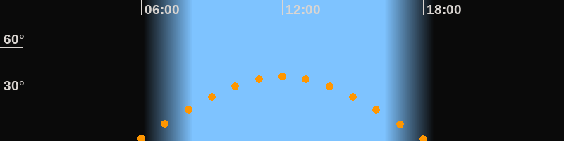 | Höchster Stand (Kulmination) | 11:59 Uhr (h = 41,4°) |