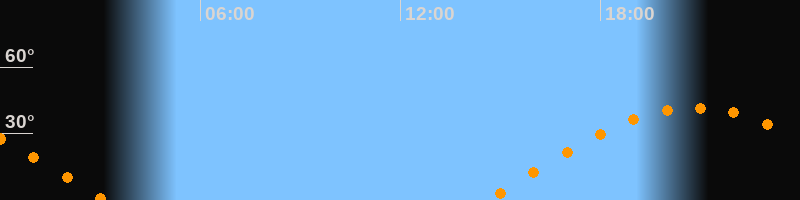 | Untergang | 03:08 Uhr im Westen (αAz = 274,4°) |