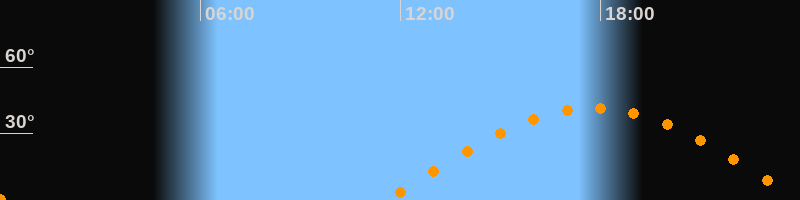 | Höchster Stand (Kulmination) | 17:47 Uhr (h = 41,6°) |