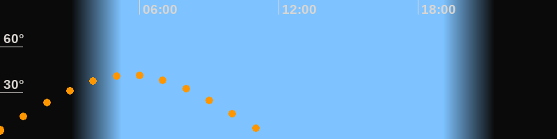 | Aufgang | 23:17 Uhr im Osten (αAz = 85,6°) |