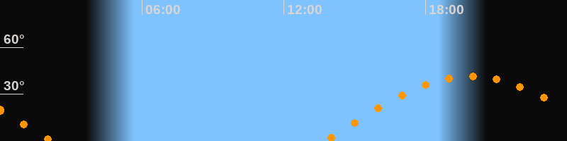 | Aufgang | 13:41 Uhr im Osten (αAz = 85,6°) |