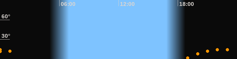 | Aufgang | 18:38 Uhr im Südosten (αAz = 130,4°) |