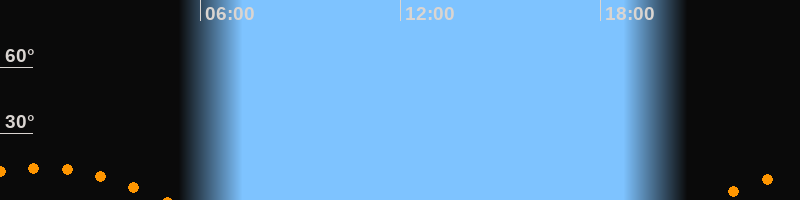 | Untergang | 04:57 Uhr im Südwesten (αAz = 229,6°) |