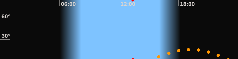 | Aufgang | 15:23 Uhr im Südosten (αAz = 130,4°) |