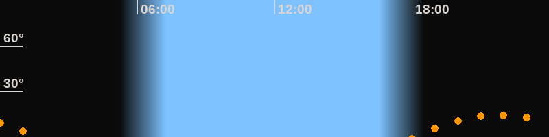 | Aufgang | 18:03 Uhr im Südosten (αAz = 130,4°) |