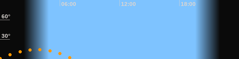 | Untergang | 07:25 Uhr im Südwesten (αAz = 229,6°) |