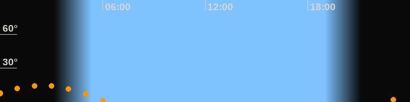 | Untergang | 06:15 Uhr im Südwesten (αAz = 229,6°) |