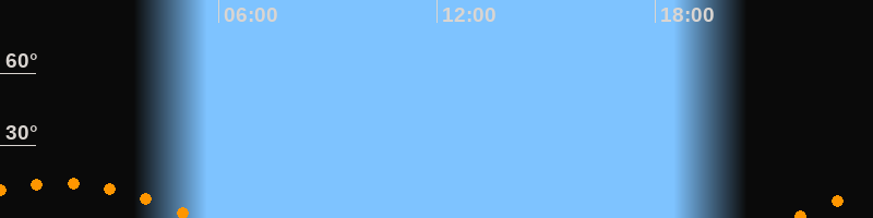 | Untergang | 05:24 Uhr im Südwesten (αAz = 229,6°) |