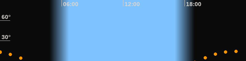 | Untergang | 02:46 Uhr im Südwesten (αAz = 229,6°) |