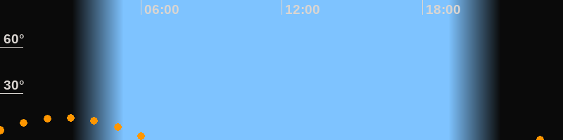 | Untergang | 06:28 Uhr im Südwesten (αAz = 229,6°) |