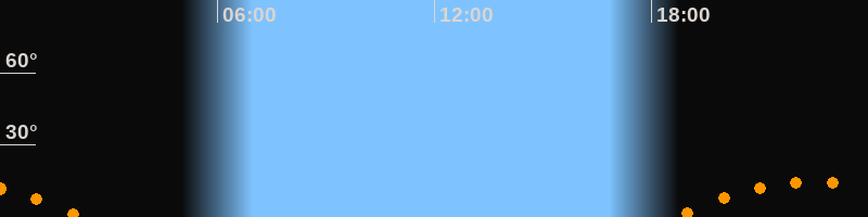 | Untergang | 02:17 Uhr im Südwesten (αAz = 229,6°) |