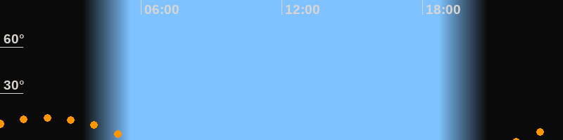 | Untergang | 05:42 Uhr im Südwesten (αAz = 229,6°) |