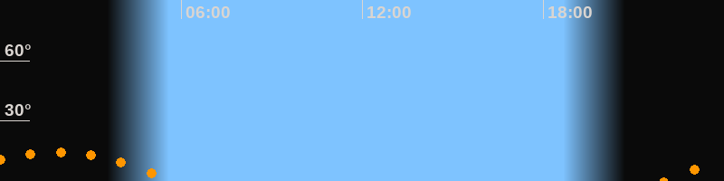 | Untergang | 05:38 Uhr im Südwesten (αAz = 229,6°) |