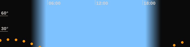| Untergang | 05:03 Uhr im Südwesten (αAz = 229,6°) |
