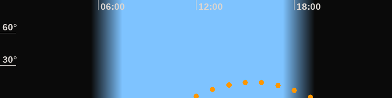 | Aufgang | 11:39 Uhr im Südosten (αAz = 130,4°) |