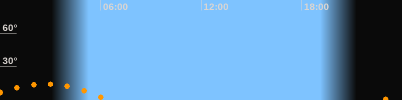 | Untergang | 06:26 Uhr im Südwesten (αAz = 229,6°) |