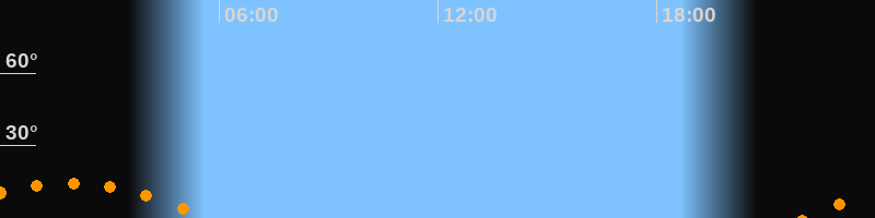 | Untergang | 05:39 Uhr im Südwesten (αAz = 229,6°) |