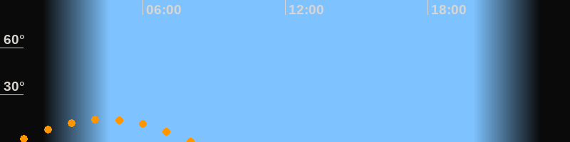 | Untergang | 08:10 Uhr im Südwesten (αAz = 229,6°) |