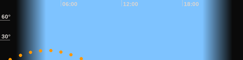 | Untergang | 08:22 Uhr im Südwesten (αAz = 229,6°) |