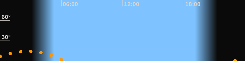 | Untergang | 06:25 Uhr im Südwesten (αAz = 229,6°) |