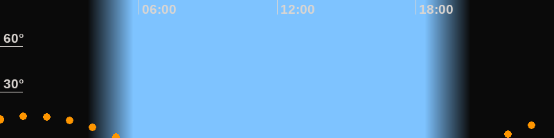 | Untergang | 05:11 Uhr im Südwesten (αAz = 229,6°) |