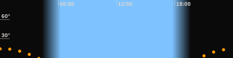 | Untergang | 04:00 Uhr im Südwesten (αAz = 229,6°) |