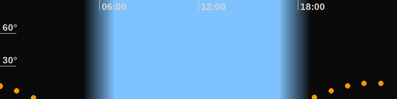 | Untergang | 02:18 Uhr im Südwesten (αAz = 229,6°) |