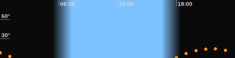| Aufgang | 17:48 Uhr im Südosten (αAz = 130,4°) |