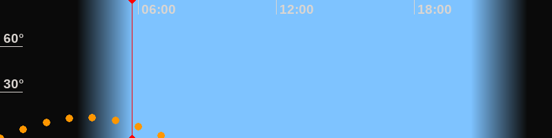 | Untergang | 07:20 Uhr im Südwesten (αAz = 227,6°) |