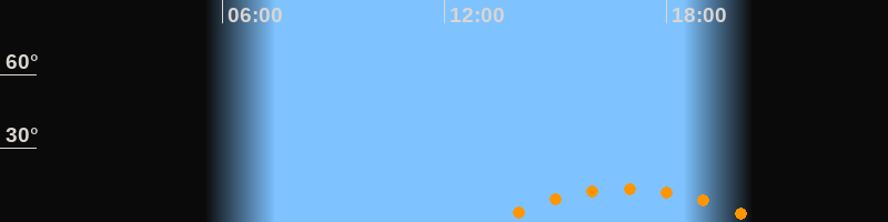 | Höchster Stand (Kulmination) | 16:56 Uhr (h = 13,5°) |