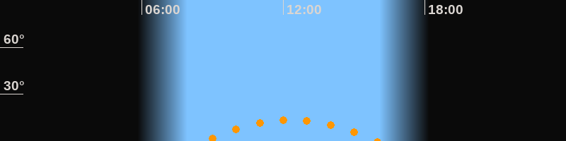 | Höchster Stand (Kulmination) | 12:20 Uhr (h = 13,5°) |